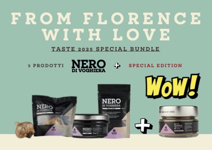 On the occasion of TASTE 2025, we are proposing a unique Nero di Voghiera offer, our bundle with: 1 black garlic bulb 30 g, 1 black garlic cream 70 g, 1 black garlic powder 30 g and, in a limited edition, black garlic salt 100 g. All for € 28, including shipping costs (within Italy). Proceed with your order between 8 and 23 February 2025, from 25 to 28 February we will ship it to you!